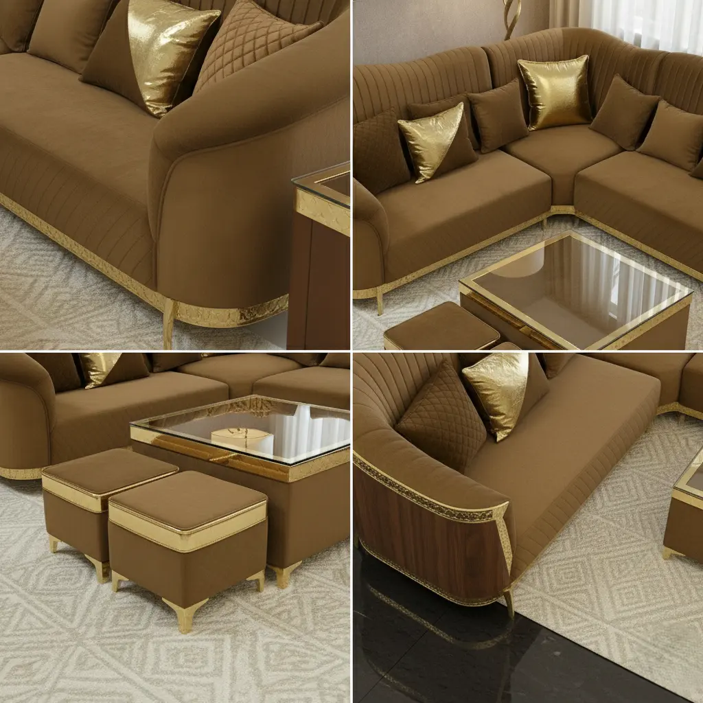 The Obli Zova is a masterpiece of contemporary design. Its unique, curved silhouette and bespoke channel tufting create a captivating flow, while the velvet-soft fabric invites pure relaxation. The L-shape design ensures ample, comfortable seating, perfectly anchored by stylish gold trim. This sectional is crafted for the discerning client who seeks unrivaled style and plush comfort in their premium home.